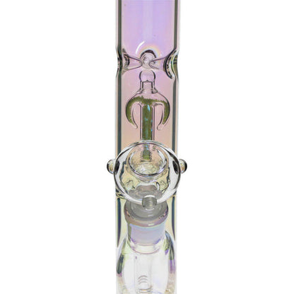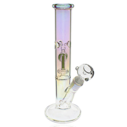 Un bang droit Plain Jane de 12 ". Cette pièce a une finition arc-en-ciel holographique sur le verre qui le fait scintiller et briller sous différents éclairages. Équipé d'un pincement à glace, d'un percolateur à ancre et d'une tige diffuse. ressemble à du sable qui ajoute une touche exquise à ce bang Verre de 9 mm d'épaisseur pour une plus grande durabilité et une sensation de lourdeur solide dans la main.