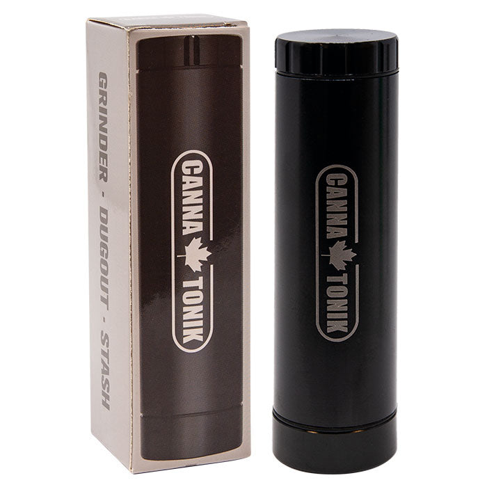Cannatonik 3 en 1 Black Grinder Dugout Stash Fabriqué en aluminium de haute qualité, comprenant : One Hitter Il a les avantages de 3 en 1 car il s'agit d'un broyeur, qui fonctionne comme une pirogue et dispose également d'un grand espace de stockage.