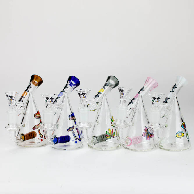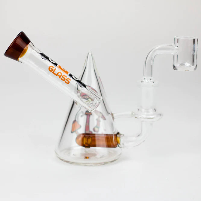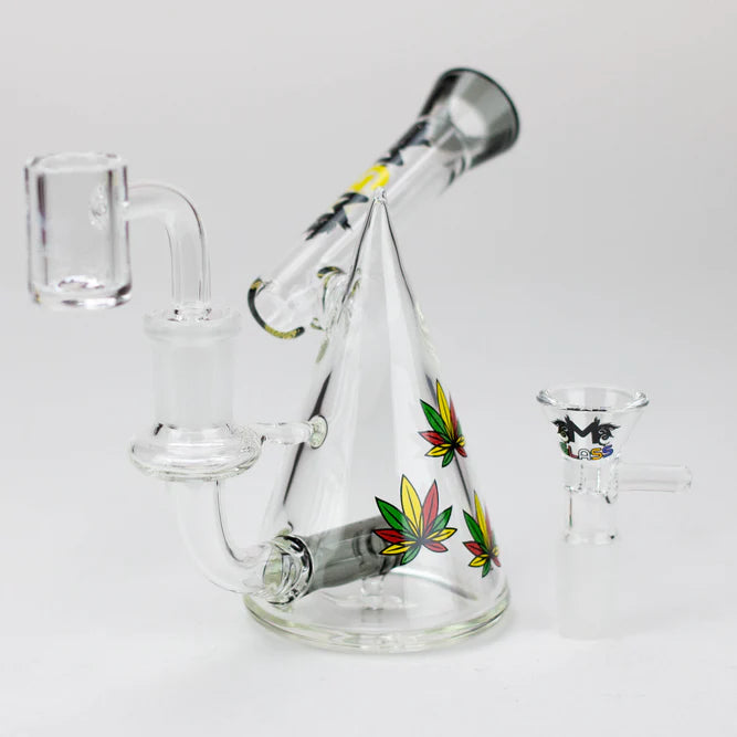 A beautiful raindrop shaped bubbler rig from MGM. Featuring a graphic on the side of the glass. Bubbler comes complete with a quartz banger for 14 mm female Joint and Thick bowl for 14 mm female Join for your favourite concentrates.
