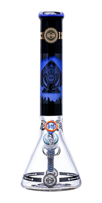 The Cheech Glass 14” Protect the Crest Beaker is a stunning addition to any glass collection. Standing at 14 inches tall and featuring a sleek 7mm thickness, this beaker showcases a mesmerizing milky blue hue that adds a touch of elegance to its classic design. The "Protect the Crest" motif serves as a reminder to safeguard what's important, while the high-quality glass construction ensures durability and longevity. With its impressive size and beautiful colouration, this beaker is perfect for those seeking a functional and visually striking piece.