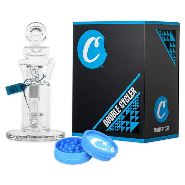 The Cookies 9" Double Cycler Water Bong is crafted from quality borosilicate glass with a raised disc percolator and a recycler style build that cycles water back into the percolator chamber while preventing splashback. Each pipe comes individually packaged with a 2-piece grinder. Prepare herb for your Cookies pipe in the Cookies grinder, made from hemp-based biodegradable material.