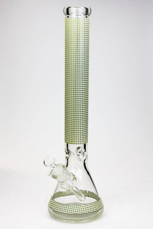 This is beautiful Diamond glow in the dark classic style beaker bong . Producing 7 mm thickness tubing is very costly to product but it is well worth due to its gorgeous and beautiful looks. It comes with an 14/18 mm slitted diffuser downstem and a 14 mm thick bowl. From there smoke is diffused and cooled in the main chamber. A long 7 mm thick tube keeps water from bubbling up towards the thick, comfortable mouthpiece, and one hole ice catcher will hold a few cubes for even cooler smoke. This water pipe is made of quality borosilicate glass.