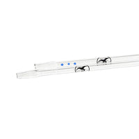 A simple glass honey straw. 8" in length. The straw features 3 dimples on the end for easy handling and grip.