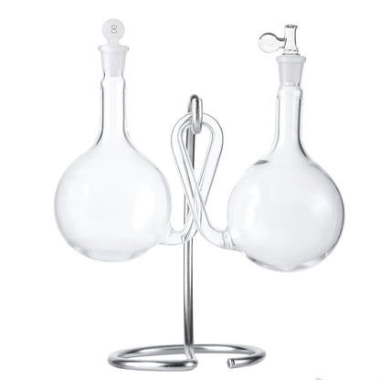The Siphonair from Gypsy Labs is the worlds first hanging gravity water pipe. The Siphonair hangs from a looping siphon that connects identical droplet shaped chambers, supported by a stainless-steel stand. The Siphonair features lipless technology releasing smoke into the air for sipping smooth, air cooled flavour and a germ friendly experience. Made with 100% scientific grade borosilicate glass & solid stainless-steel, each chamber holds approximately ~300ml.