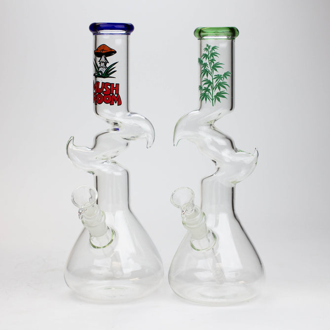 This no-spill Zong style water pipe comes equipped with a herb bowl and slitted downstem. It is 14 inches tall with double kinks which translates to more volume compared to a straight tube of the same height.