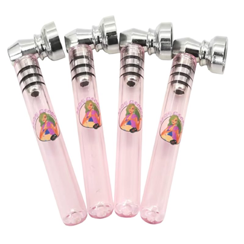 Elevate your smoking experience with the Lady Hornet Smoking Pipe, a stylish and functional accessory featuring a vibrant pink color, compact 3.66″ length, and durable aluminum and glass construction, all wrapped up in a sleek hammer-style design.