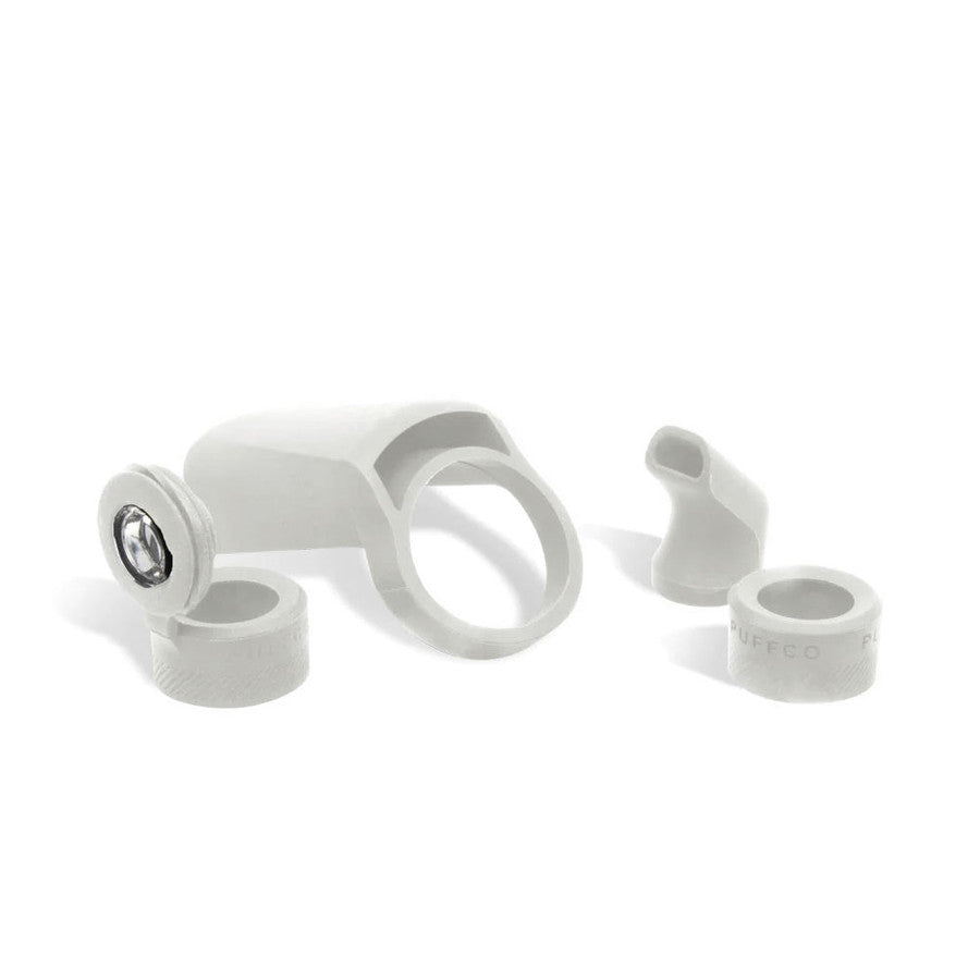 The Puffco New Peak Pro Travel Pack - Pearl White keep everything you need into one place, making it easier than ever to take what you need everywhere you go. In addition to the Oculus Carb Cap, the Peak Pro Travel Pack comes with a Ball Cap. The Oculus Carb Cap that provides a window into your dab experience. The backpack to store your supplies. The comfortable Mouthpiece that allows for a better head position while hitting. The Chamber Jacket & Tether to keep your Oculus carb cap locked in place. Also the Chamber Jacket for using different carb caps.