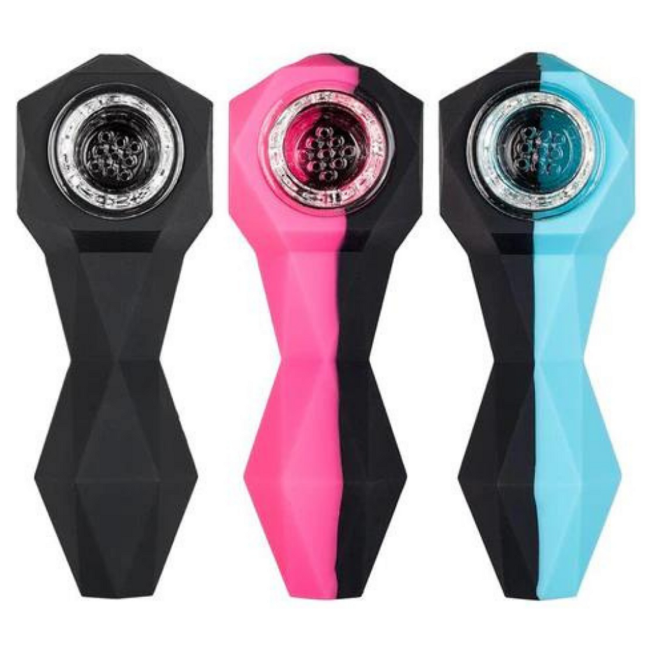 This is the Brand new Rebound Silicone Spoon Hand pipe comes with a Glass Bowl and is 4″ Long