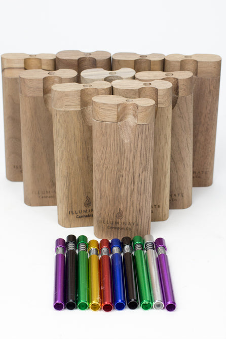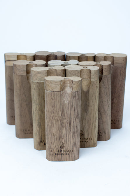 Need a convenient method of enjoying your herb on the go? Regular Dugout One-hitter Stands 10.5cm / 4 Inch tall and comes with a 3 Inch Bat Available in Mahogany. The Dugouts and wooden products are are CnC machined, hand finished and assembled in Canada.